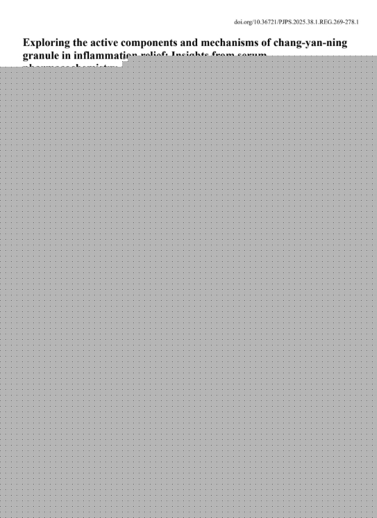 此次发表的文章题为《肠炎宁颗粒缓解炎症的物质基础和药理机制:血清药理学与网络药理学综合研究》,刊登于巴基斯坦制药科学杂志(Pak. J. Pharm. Sci.)。该研究深入探讨了肠炎宁颗粒(CYNG)在治疗溃疡性结肠炎(UC)中的作用机制,通过血清药理学和网络药理学的综合方法,揭示了其抗炎活性成分及关键信号通路,为肠炎宁颗粒的临床应用提供了坚实的科学依据。